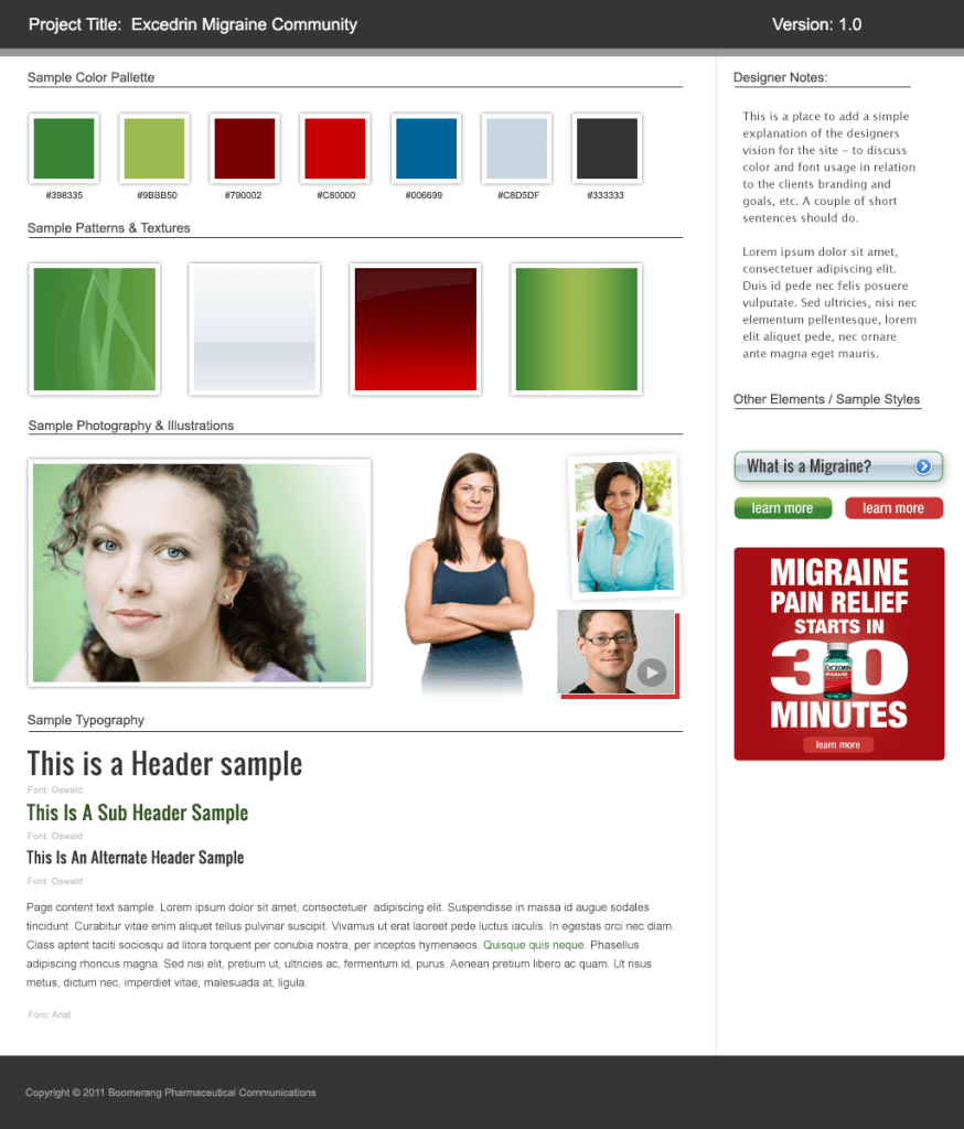 With the initial site designs, we were able to re-engage our pool of migraine sufferers and have them look at our prototypes. The look and feel was a big hit, however they felt the only thing they would use the site for is to download coupons. We had created a tips section but it wasn’t enough, the users needed a forum to talk about their experiences. The Excedrin Community page was designed to allow customers to submit their migraine stories, share tips and tricks for coping with migraines, and yes, download coupons. The valuable insight we received from users turned a basic website into an experience.