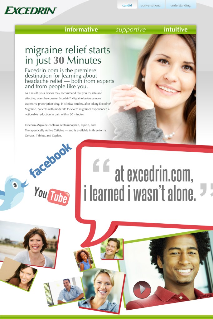 Community: This is where the idea for the Excedrin community started to take shape. Provide the customer with a forum to share their stories so they know they aren’t alone.