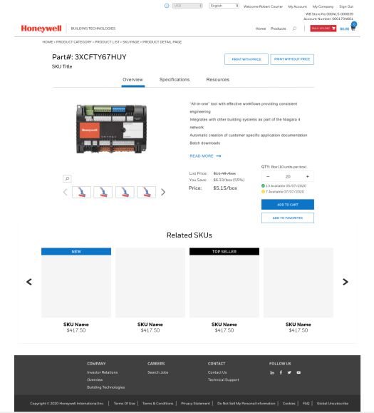 Honeywell Building Technologies E-commerce/self-service solution was on an unsupported platform. This project is necessitated as part of the convergence platform roadmap mandated by Honeywell corporate. The HBT team wanted to take this opportunity to set up a best in class E-commerce foundation. This project was executed in multiple releases throughout the year. MVP 1 transitioned the existing solution to the new platform and implemented minimal design changes. MVP 2 reflects the user research and competitive analysis conducted.