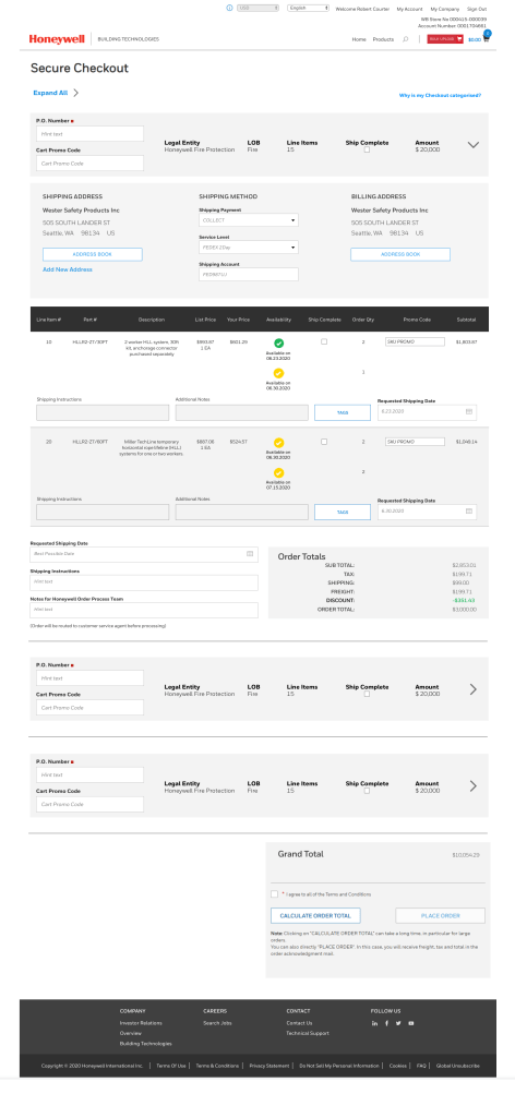 - Some of our customers have access to multiple lines of business, (Fire products, Safety products, Security products) because of this they are forced to repeat the checkout process each time with a different purchase order number.
