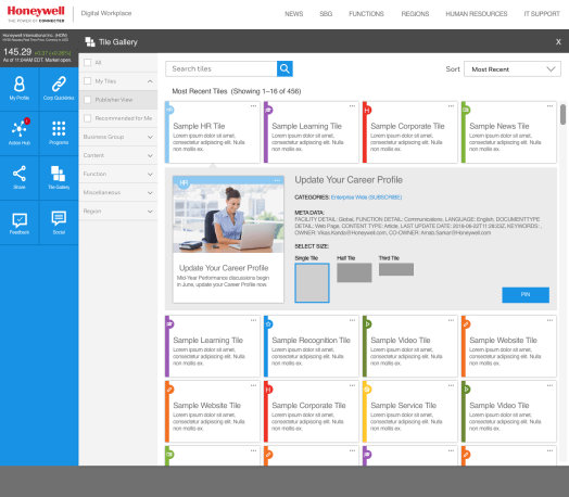 The DWP improves the employee’s efficiency, productivity and creates a common look and feel across Honeywells businesses and functions, globally thereby improving Honeywell User Experience.